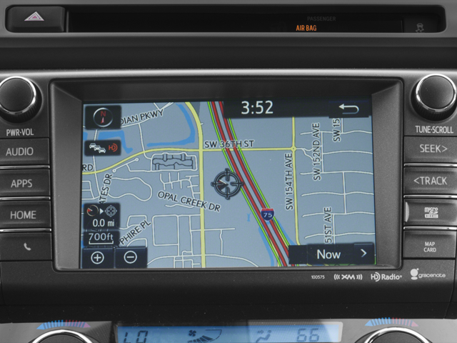 - Radio: Entune Premium Audio with Navigation -inc: AM/FM/MP3/WMA Playback, Entune App Suite, 6 speakers, HD Radio w/iTunes tagging, HD Traffic and Weather, SiriusXM Radio w/90-day trial, 7" touch-screen w/integrated back-up camera display, auxiliary audio jack, USB port w/iPod connectivity and control, vehicle information w/customizable settings, hands-free phone capability, phone book access and music streaming via Bluetooth® wireless technology