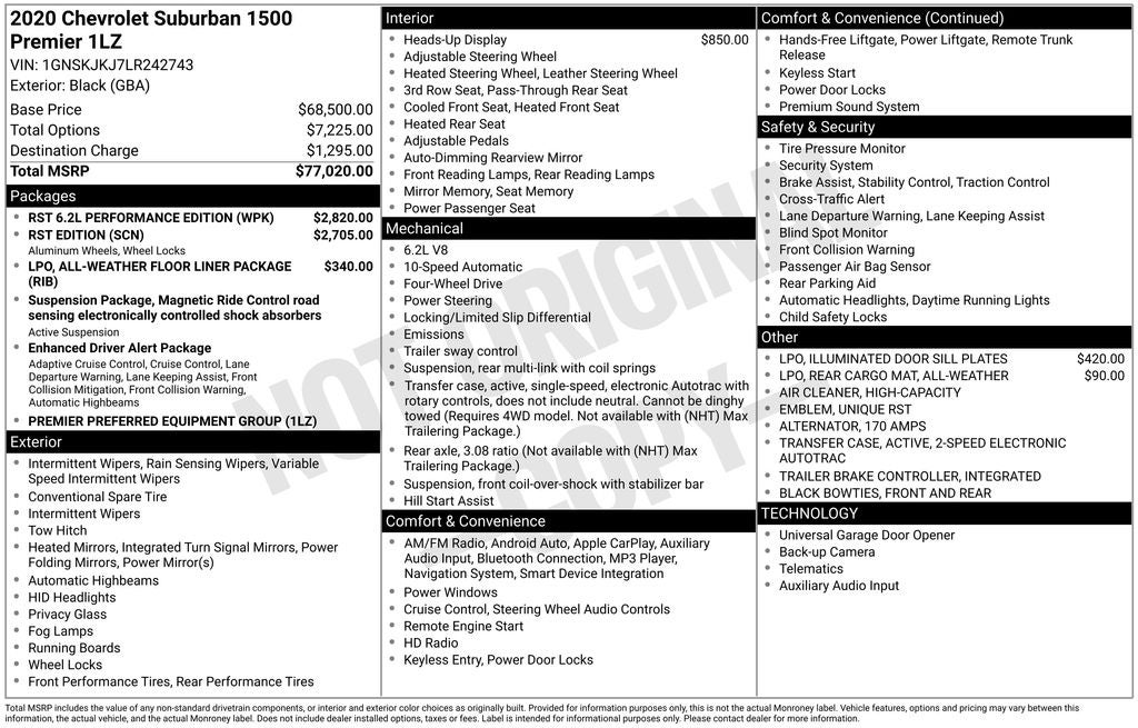 Don't miss your chance to own this exceptional 2020 Chevrolet Suburban Premier. Schedule a test drive today and discover the ultimate in luxury, power, and versatility.