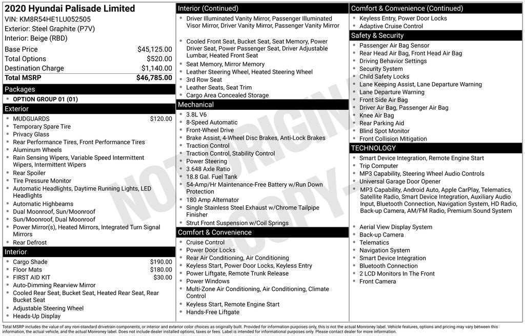 - Vehicle Name: Hyundai Palisade