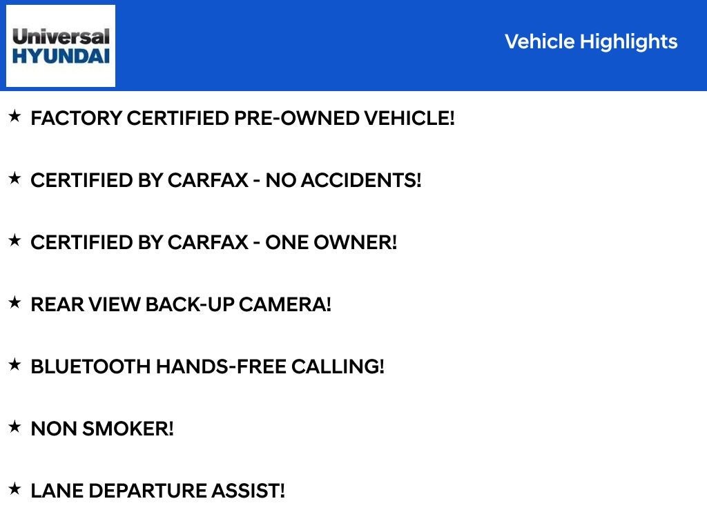 Hyundai's commitment to quality is evident in this Certified Pre-Owned Elantra. With a 173+ Point Inspection, Roadside Assistance, and comprehensive warranties, you can purchase this vehicle with confidence, knowing that it has been meticulously inspected and backed by Hyundai's industry-leading certifications.