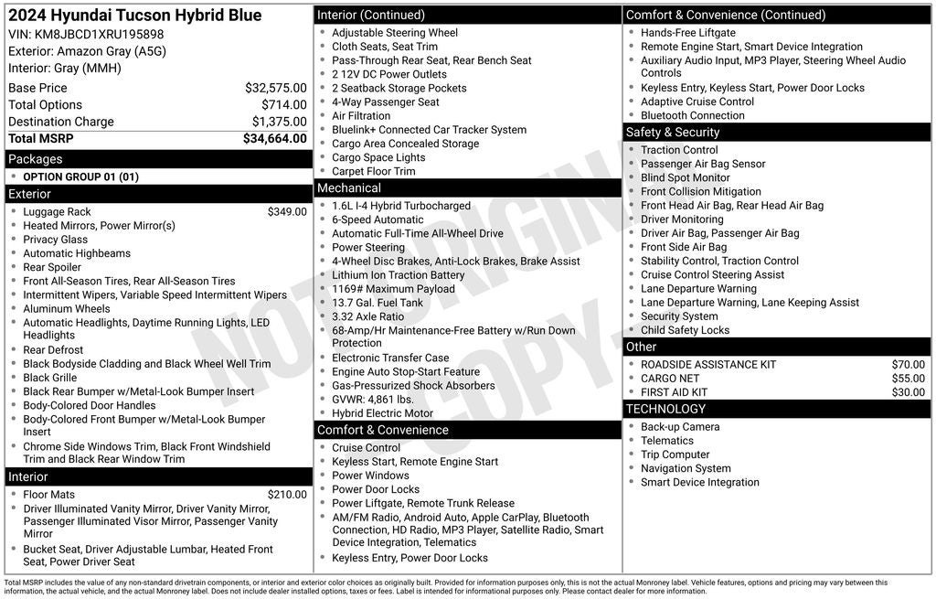 - Vehicle Name: Hyundai Tucson Hybrid