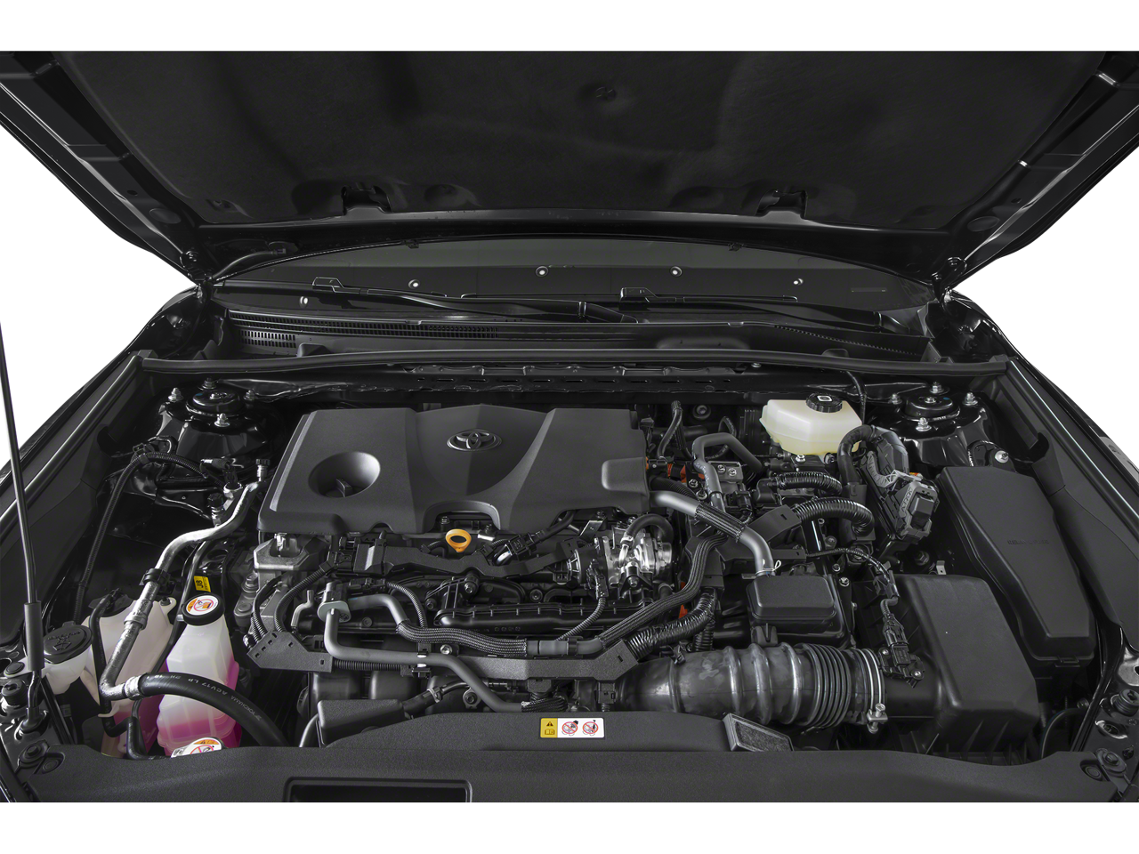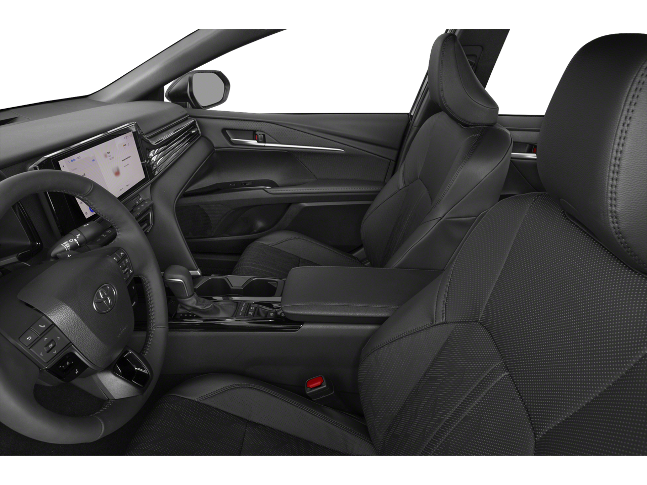 Inside, you'll find a wealth of premium amenities, including a 12.3-inch touchscreen Toyota Audio Multimedia system, dual-zone automatic climate control, and a heated steering wheel. The leather-trimmed seats are both stylish and comfortable, with the driver's seat offering power adjustability.